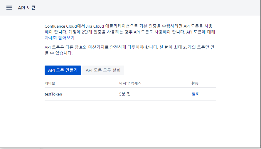 1. API 토큰 화면 접속 : https://id.atlassian.com/manage-profile/security/api-tokens
