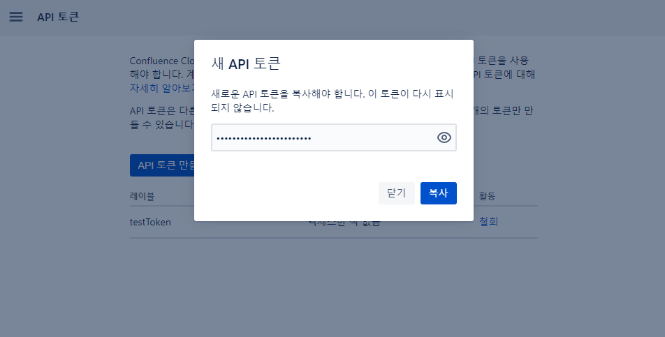 *여기에 설명이 잘 나와 있습니다 -> https://confluence.atlassian.com/cloud/api-tokens-938839638.html